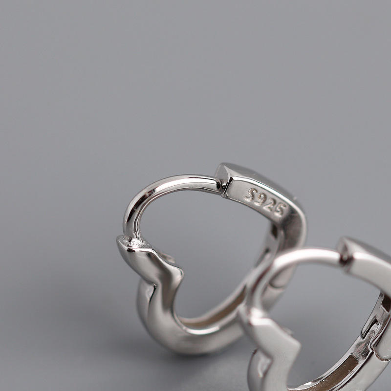 925 Sterling Silver Heart Huggie Earrings